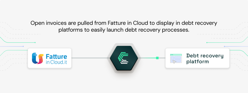 Debt recovery platforms like GCollect, LegalCity, and Rubypayeur connect to invoicing software like Fatture in Cloud via Chift to automatically retrieve open receivables and trigger debt collection processes. This eliminates manual tracking and ensures timely action on unpaid invoices.