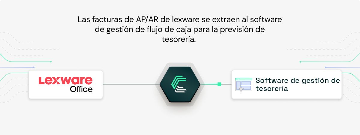 Las herramientas de gestión de tesorería pueden extraer cuentas por cobrar y por pagar de Lexware Office para construir proyecciones precisas. Datos en tiempo real significa mejores decisiones para las pymes a las que sirves.