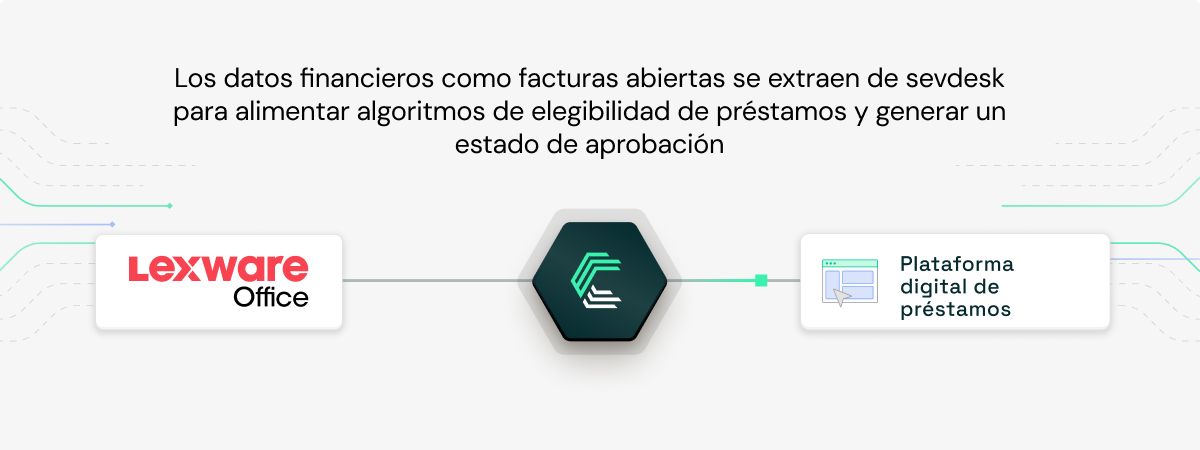 Las plataformas de préstamo pueden recuperar la antigüedad de facturas, el historial de pagos y los saldos de cuenta desde Lexware Office a través de la API Unificada de Contabilidad de Chift, para evaluar el riesgo y automatizar decisiones de crédito, sin pedir a los clientes que exporten hojas de cálculo manualmente.