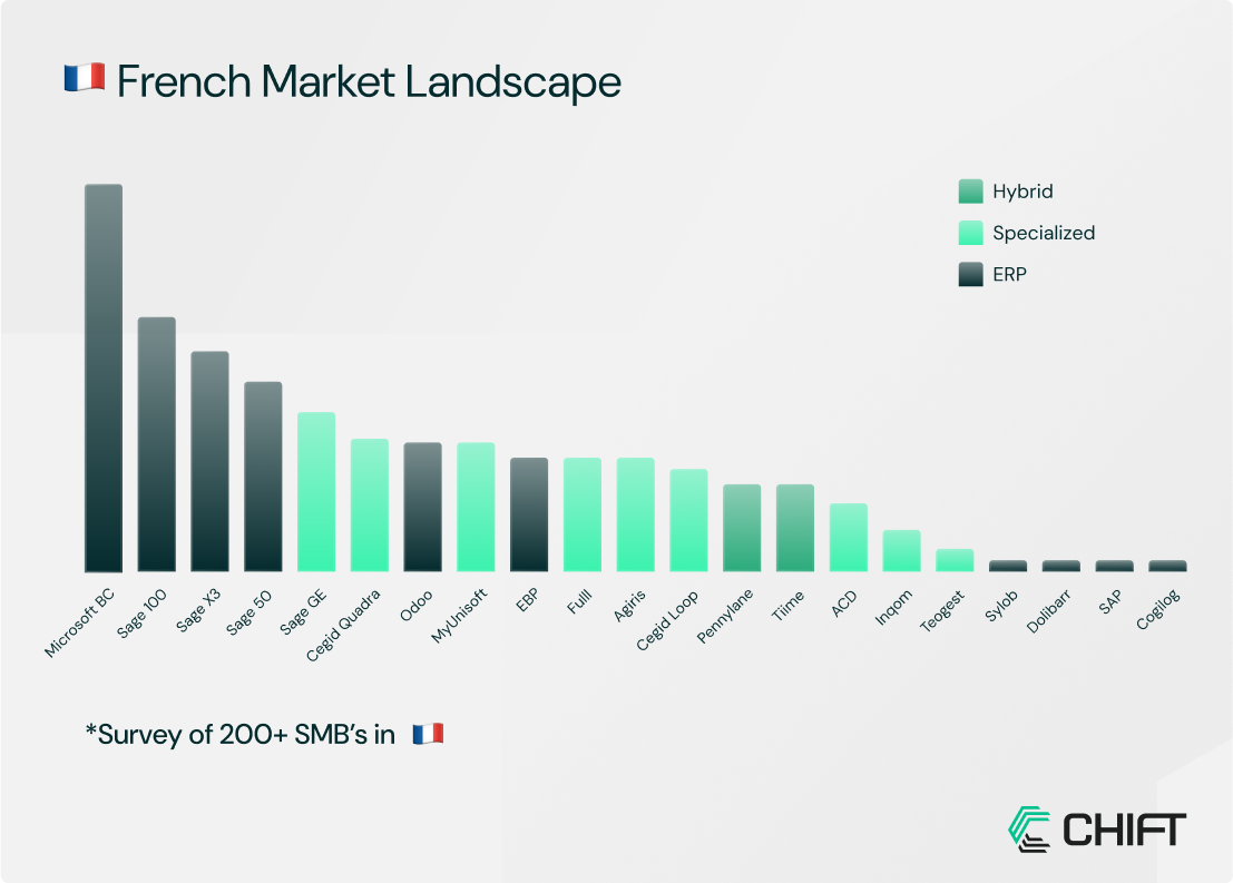 Alors que Microsoft BC est mondial plutôt que spécifique au marché français, il est en tête de notre classement d'adoption en France.