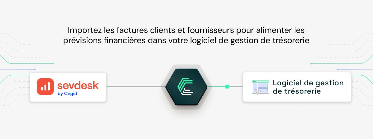 Les logiciels de gestion de trésorerie peuvent récupérer les factures clients et fournisseurs ouvertes depuis sevdesk pour construire des projections précises et à jour. Avec un accès aux données AR/AP en temps réel, vos utilisateurs anticipent leurs flux de trésorerie plutôt que de s'appuyer sur des exports statiques.