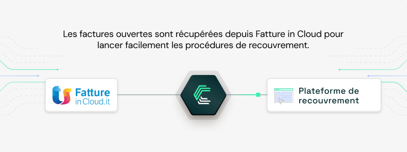 Des plateformes de recouvrement comme GCollect, LegalCity et Rubypayeur se connectent à des outils de facturation comme Fatture in Cloud via Chift pour récupérer automatiquement les créances ouvertes et déclencher les processus de relance.